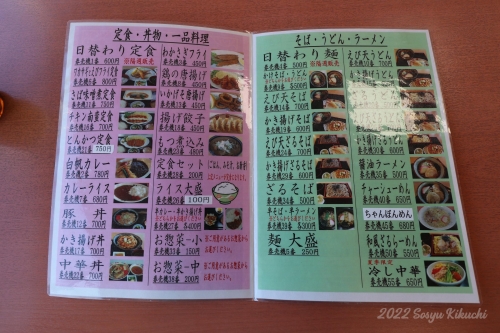 メニューは定食、丼物、一品料理、蕎麦、うどん、ラーメン等です。手づくりのお惣菜も数量限定で販売されています。券売機でお求めのメニューを注文するシステムです。