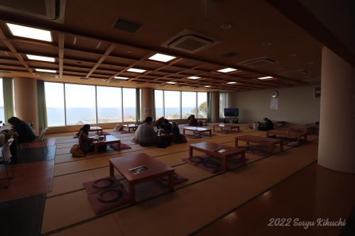 建物2階には、お食事処(水郷の間)があります。休憩がランチタイムにかかる場合は、ここで済ませる方法も。お座敷席で癒される空間です。窓際からは霞ヶ浦の様子が見えます。