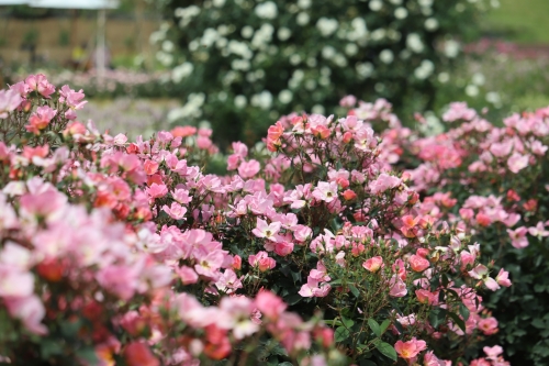 「ローズパレット」エリアには、11色のバラが色ごとに分かれて植えられています。遠くから眺めると色がグラデーションになっている様子が分かります。お気に入りのバラの色がここで決められるかもしれませんね。