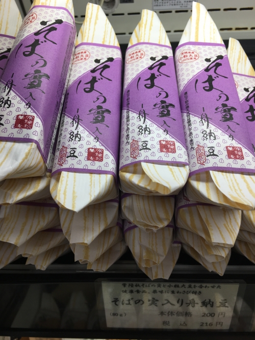 その他の定番商品、そばの実入り舟納豆(216円/80g/194kcal)や、大むぎ入り舟納豆(216円/80g/189kcal)ももちろん用意があります。