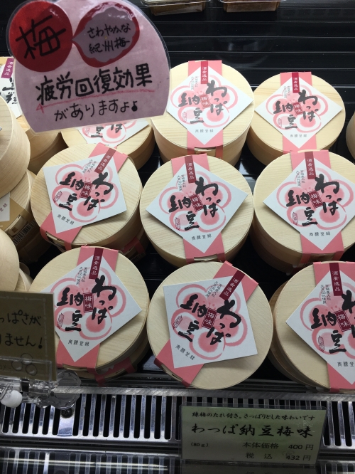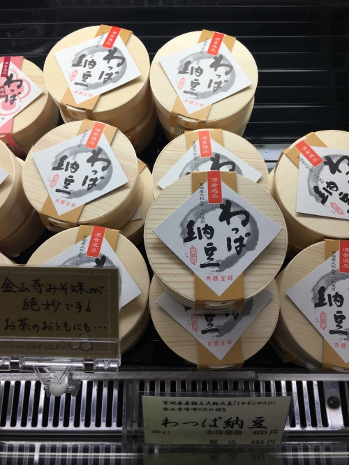 わっぱ納豆は、主に宮城県産大粒大豆(ミヤギシロメ)を使用した商品です。曲げわっぱに入った納豆を味わうことができます。タレの味は二種類で、金山寺みそ味(432円/80g/235kcal)と、梅タレ味(432円/80g/189kcal)の用意があります。