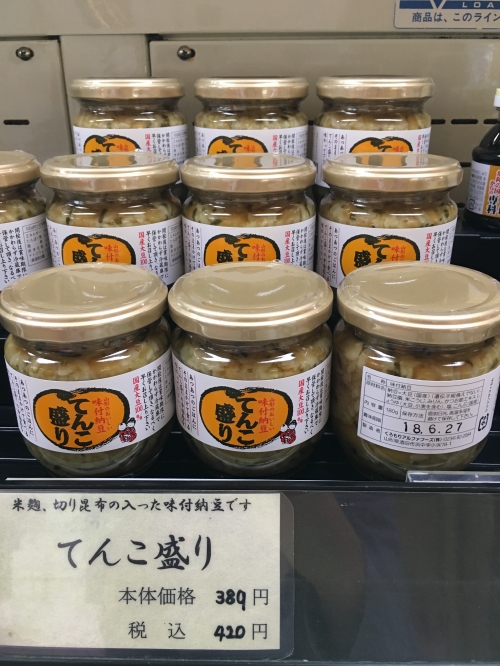 納豆だけでなく、調味料も種類が豊富です。特に、米麹と切り昆布が入った味付け納豆「てんこ盛り」(420円/1瓶)がおすすめです。大粒の大豆にトロッとした麹が合わさり、ご飯によく合います。添加物不使用で、安心して頂けます。