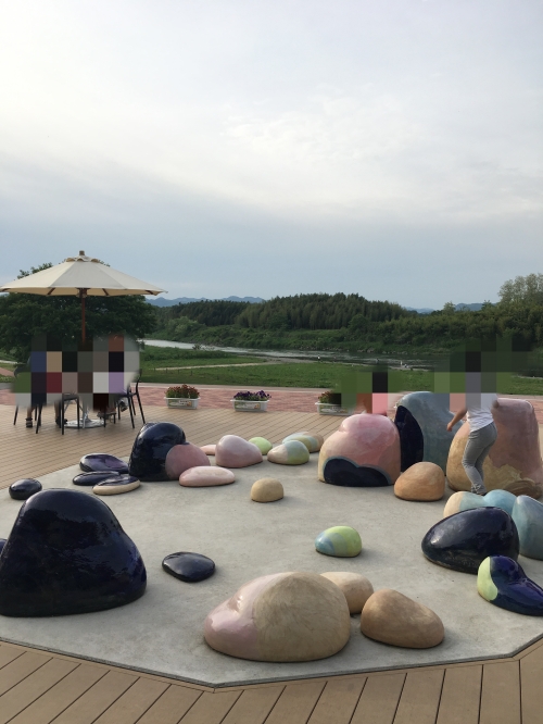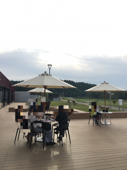 外に出ると、テラス席が広がっており、子供たちも退屈しない遊び場となっています。目の前には久慈川がゆったりと流れ、気持ちの良い空間となっています。舟納豆本店へ行かれた際は、ぜひショッピングとリラックスとしてお立ち寄り下さい。