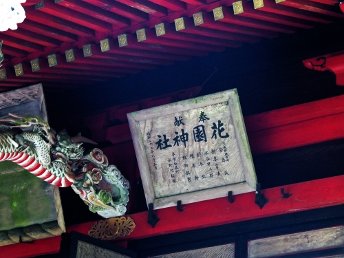 赤い楼門の両脇には、石で作られたとても可愛らしい仁王様がいるので、ぜひご覧になって下さいね。周囲には花園川や小川が流れていることもあり、しっとりとした空気を感じます。