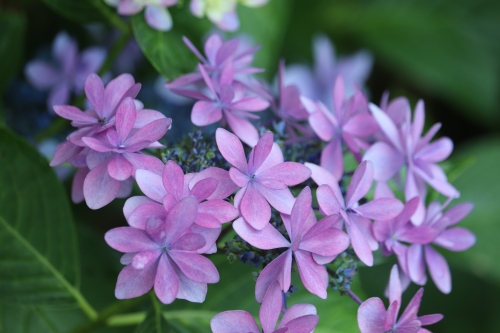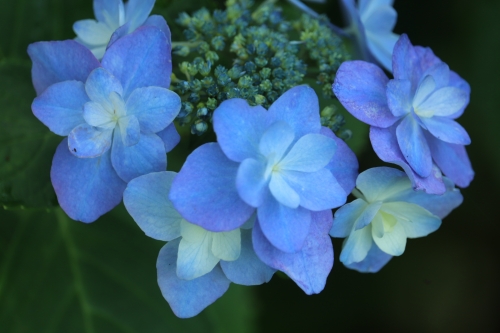 ダンスパーティ、セルリアンブルー、オタフクアジサイなど、多数の品種を鑑賞できます。あじさいの谷は高低差がありますので、見る場所によってその都度景色が変わります。好きな角度やポイントを見つけながらの散策も楽しいですね。