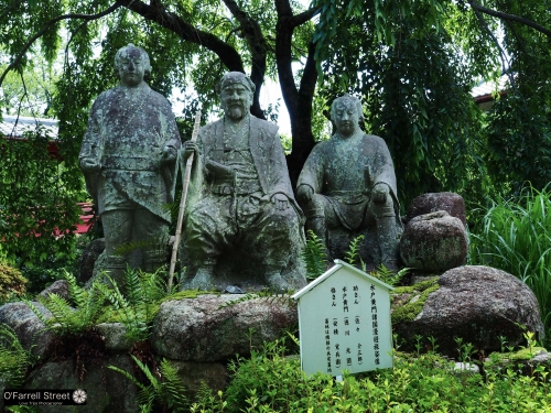 ご本尊は勢至菩薩(せいしぼさつ)で、縁結び・金運・合格祈願に恵まれるとされています。本堂手前には、水戸黄門御一行様の銅像も。