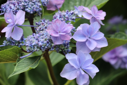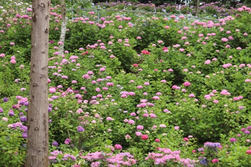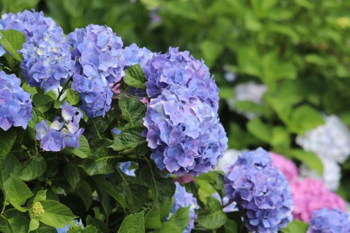 紫、ピンク、水色、白など各色の紫陽花を堪能できます。