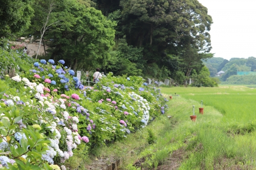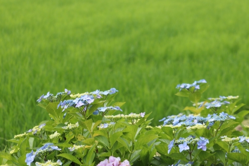 紫陽花と田んぼの組み合わせで写真を撮ってもいいですね。
