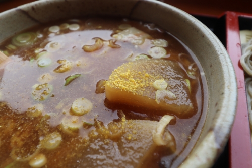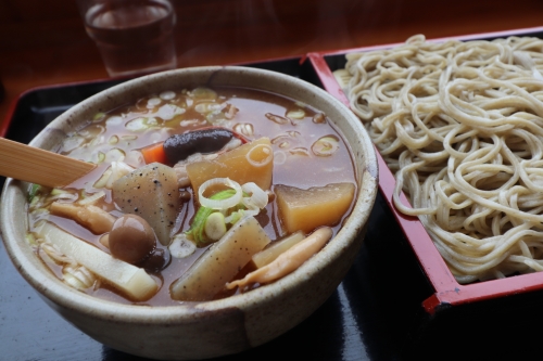 「里のめぐみ」では、県の奨励品種である常陸秋そばが頂けます。冬季限定のけんちんつけそば(850円)は、お野菜がごろごろ入ってとってもヘルシー!お蕎麦は透明感があって、香り豊かで絶品です。