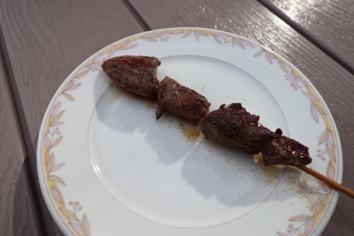 案内所やお土産ショップが入った建物では、ダチョウ肉の串焼き(440円)が食べられます。ダチョウ肉の冷凍パックも販売されていますので、気になる方はお土産にしてみては。意外と知られていませんが、ダチョウ肉は赤身で濃厚な味わいが楽しめるヘルシーなお肉です。