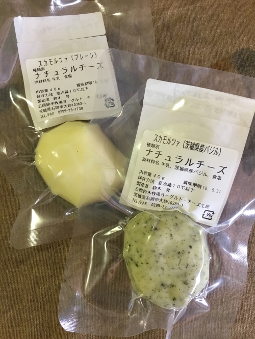 スカモルツァ(プレーン40g/300円、バジル40g/320円)は、モッツァレラチーズから水分をしぼりとったようなイメージで、ほどよい硬さとチーズの香りが特徴です。ハード系のチーズが好きな方におすすめです。