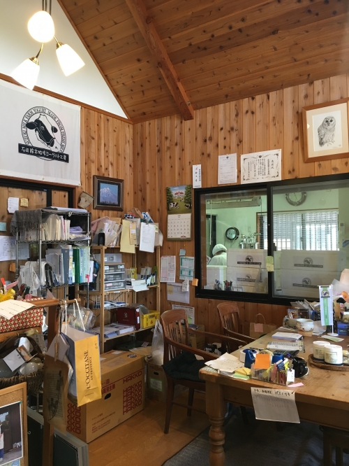 中はログハウスのようなデザインで、木のぬくもりが感じられます。作業をしている方の姿もちらっと見えました。