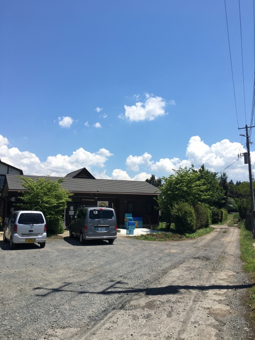駐車場は5,6台分が駐車可能です。駐車場の向かいに、建物があり、こちらが販売コーナーとなっています。