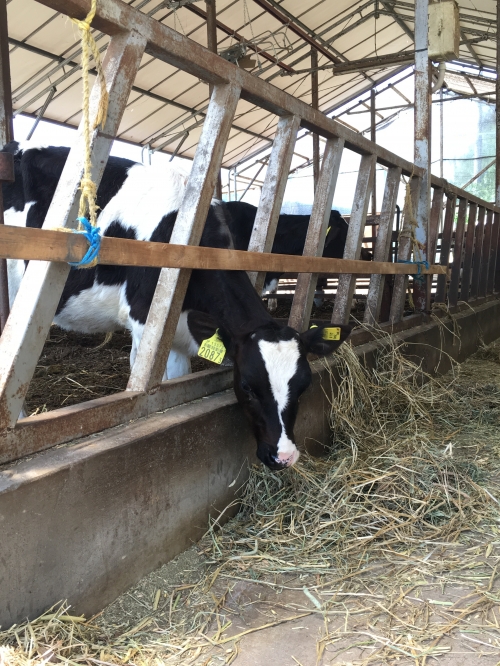 一番手前の小屋には子牛がいます。こちらの子牛ゾーンのみ近くで見学可能です。