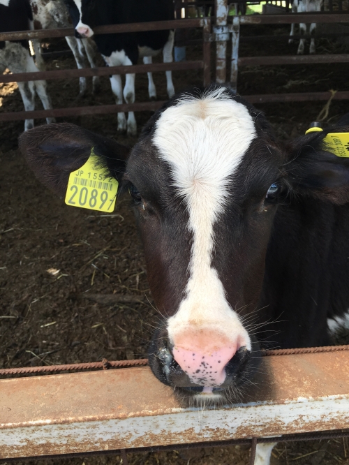 子牛は毛並みがつやつやしています。人懐っこく近寄ってきたり、草をはんでいる姿は可愛らしいです。