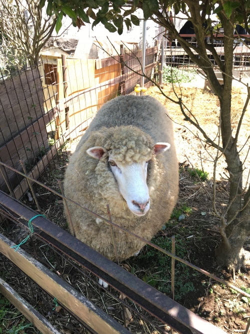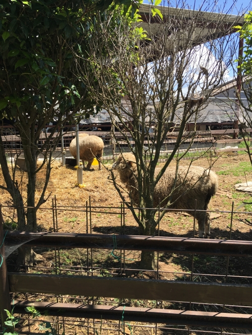 入り口付近には羊もいます。まだ毛刈りをしていない時期だったのか、とても重そうな羊毛をくっつけて歩いていました。