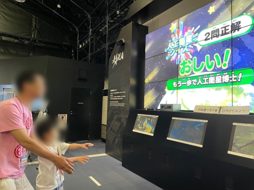 小さいお子さんから大人まで人工衛星クイズが楽しめる「マモルホシ」や、国際宇宙ステーションの一部を再現した実物大模型の「有人・宇宙環境利用」は特に人気!