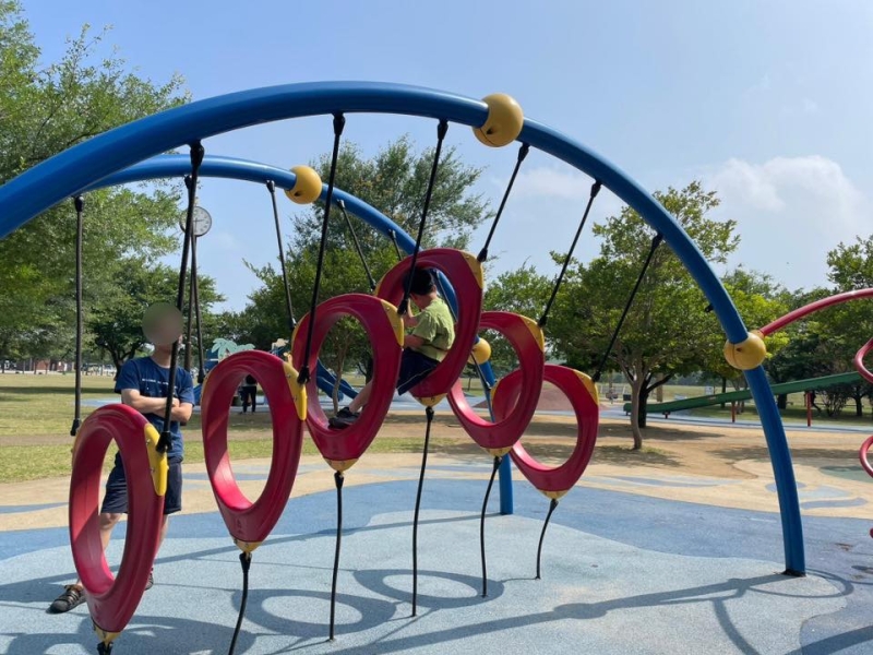 神栖中央公園を訪れて、まず目に飛び込んでくるのが「大型複合遊具」!