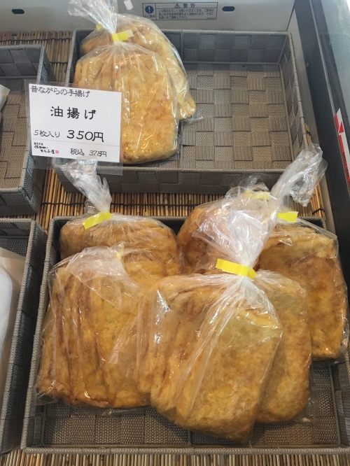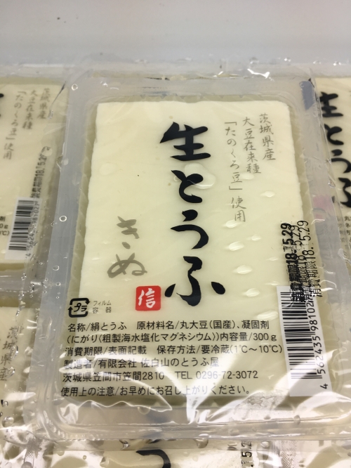 茨城県産の「たのくろ豆」という大豆を使い、様々な大豆加工食品を販売しているお店です。生とうふ(190円)、油揚げ(350円/5枚)、生ゆば(290円/2枚)などが揃っています。