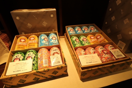 手前にはクラフトビールの「常陸野ネストビール」シリーズが勢揃いです。冷蔵庫には、瓶入りと缶入りの両方の商品がずらっと並んでいます。