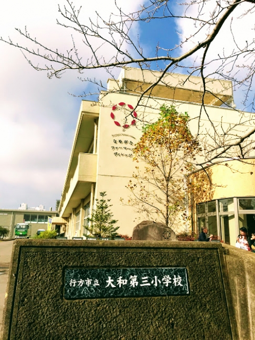 ファーマーズヴィレッジの建物は、廃校となった「行方市立大和第三小学校」の校舎をリニューアルしたものです。入口に立っている「やきいものよう精 焼き右衛門(やきえもん)」が、写真を撮ってよ!とこちらを見つめてきます(笑)。