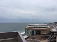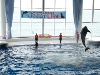 写真:旅田サトシ オーシャンライブで披露するイルカのジャンプ |  写真:旅田サトシ 大洗町循環バス「海遊号」 |  写真:旅田サトシ アクアワールド・茨城県大洗水族館からの景色 |