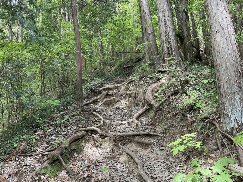 スタートから鎖場の連続までの登山道は、足場の悪い場所も多く、それなりの急登もあります。