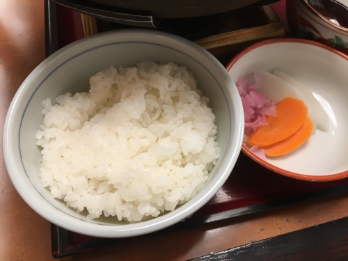 とんかつは定食形式で提供され、キャベツの千切り、ご飯、お味噌汁、小鉢、お漬物がついてくるスタイル。揚げ物はご飯がよくすすむので、ライスを大盛にすることもできます。