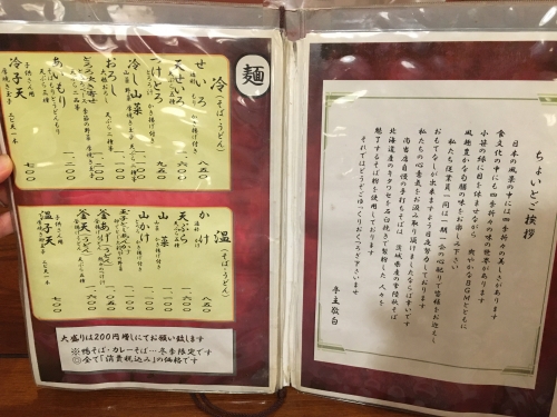 メニューはお蕎麦のほか、御膳、丼もの、一品料理がありますが、メニュー数は少ないです。季節のメニューもありますので、訪問時の旬の食材を頂けるのもポイントでしょう。