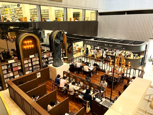 2021年にはエントランスホールに星乃珈琲店が参入。「としょカフェ」をコンセプトに、珈琲と本を楽しめるエリアが完成。議事堂時代のブロンズの彫像や内装も重厚感があって、ヨーロッパの図書館のようなお洒落な空間です。