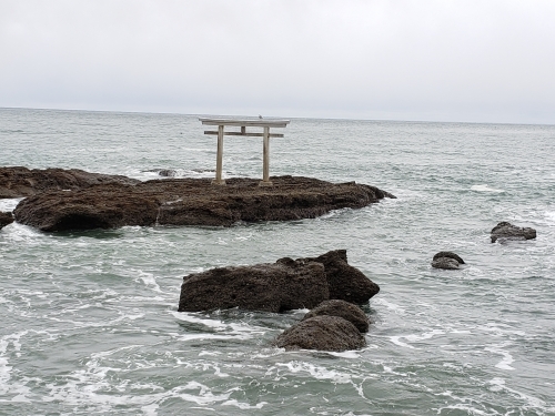 お社には3つの鳥居がありますが、太平洋の岩盤の上に建つ「神磯の鳥居」は、ご来光の絶景スポットとして人気です。