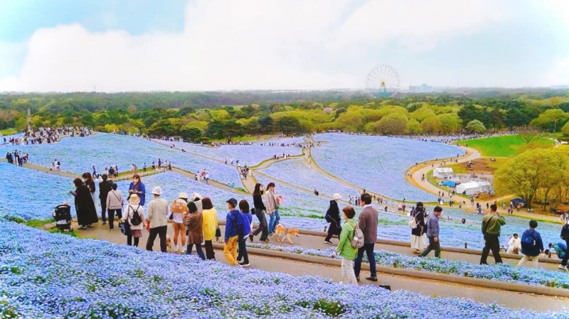 一年を通してさまざまな花を楽しむことができ、春のネモフィラや秋のコキアは特に人気。