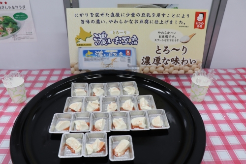 工場見学を終えると試食の時間もあり、またお土産コーナーでは、おかめシリーズ「極小粒納豆」のパッケージを模した消しゴムやストラップなど、激カワなアイテムが揃っています。