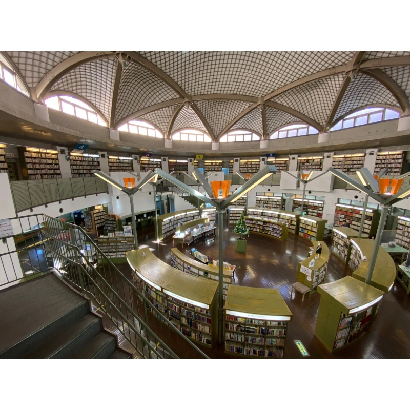 自然に囲まれた円形ドーム型の建物で、内部は中央が吹き抜けになっています。壁面がぐるりと囲むような書架となっていて、本に包まれているような落ち着いた雰囲気です。映画『図書館戦争』でロケ地となり、一躍有名になりました。ふたりで本を読みながら、ゆったりとした時間を過ごしてみるのもいいですね!