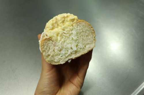 筆者はみねドックを頂きました。マヨネーズが絡まったはるさめサラダの食感と、歯ごたえがあるコッペパンの組み合わせが斬新です。はるさめの上にのったたまごサラダは、卵を茹でるところから作り始めるそうで、真心こもった味を堪能できます。