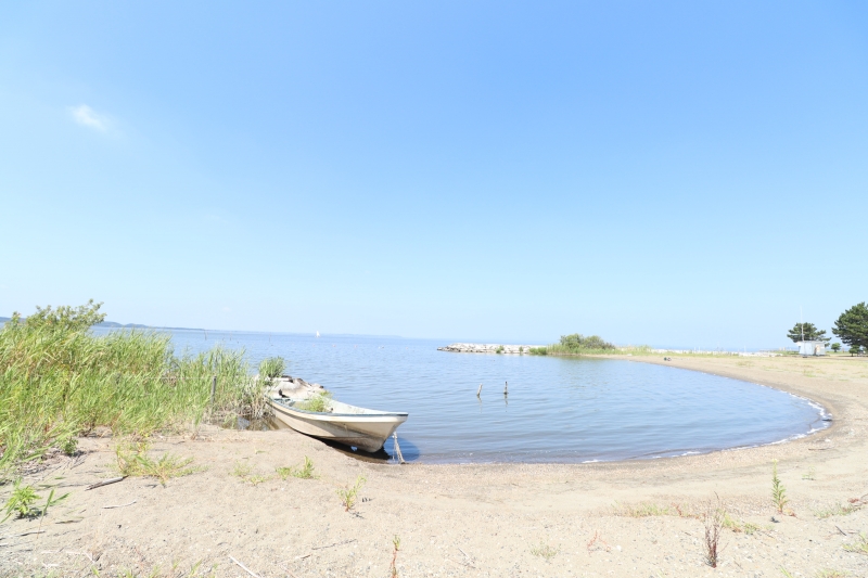 温泉施設の目の前には、霞ヶ浦湖畔の白い砂浜が広がります。温泉に入る前に散策してみると気持ちがいいです。タイミングが合えば、ボートなどに出会えるかもしれません。