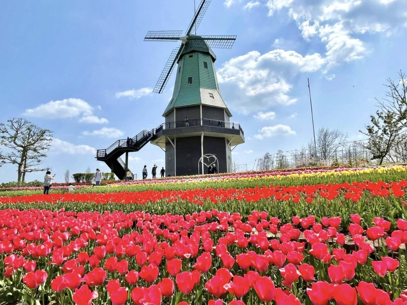 例年4月中旬ごろに咲きそろうので、カラフルなチューリップとオランダ型風車のコラボレーションを楽しんでみて下さいね♪