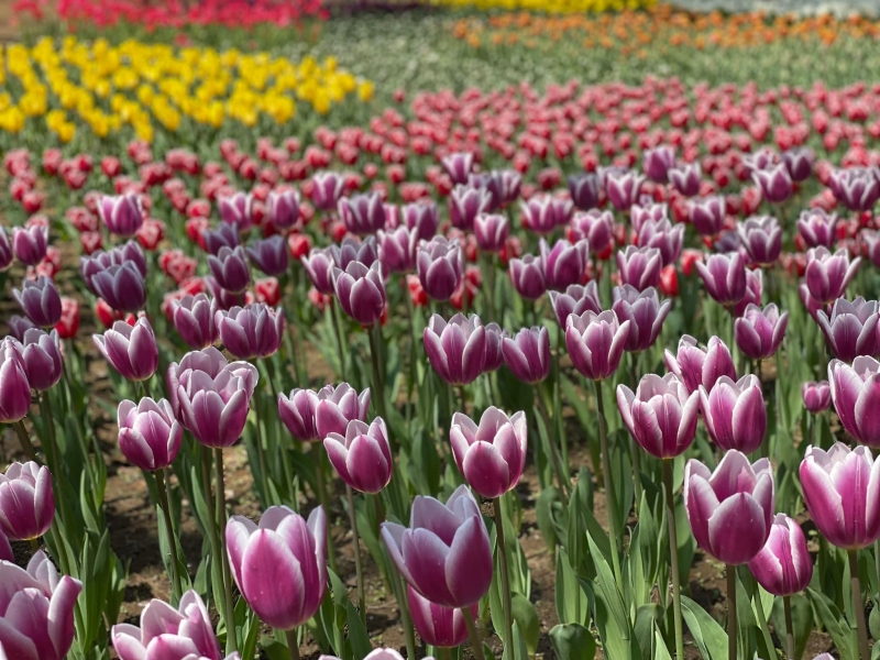 1年を通して多彩な花を楽しむことができますが、春にまず注目したいのがチューリップ。たまごの森フラワーガーデンでは、花の形や色が異なる様々なチューリップを楽しむことができます。