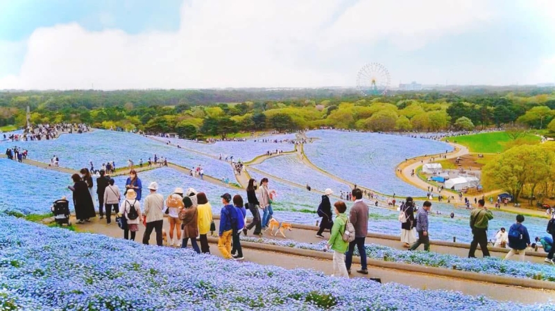 また、同じく4月中旬ごろからは有名なネモフィラも咲き始めます。小さく可愛らしいネモフィラがみはらしの丘一面を青く染め上げる様子は圧巻!