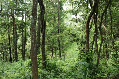 下りがメインの遊歩道です。池まで繋がっていて、途中山の緑が美しいです。