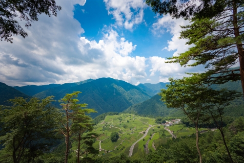 揖斐川町は古くからお茶の栽培が盛んな場所で、標高330mにある上ヶ流地区は、山の中腹から山頂にかけて一面に広がる茶畑があります。ペルーのマチュピチュのようだとインスタグラムをはじめとするSNSで話題となり、現在では「岐阜のマチュピチュ」や「天空の茶畑」と呼ばれるようになりました。それと同時に、ここで栽培される古来茶も「天空の古来茶」としてブランド化されています。