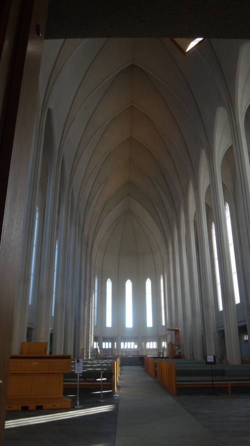 街のシンボルとも言えるハットルグリムス教会もお忘れなく。教会内部も、堅実でモダンな雰囲気。こちらももちろん美しいですが、エレベーターで塔の上に登ると(有料:大人1人900ISK/約920円)レイキャビクの街が一望できるので、そちらもおすすめです。