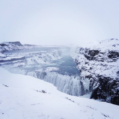 「Gull」は、アイスランド語で「黄金」という意味で、「Gullfoss」は「黄金の滝」という意味です。晴れた日には飛沫が陽の光に照らされて黄金に輝くことから、この名前がつけられたと言われています。