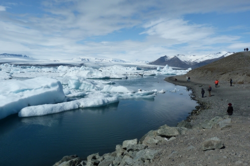 冬季には氷河の塊が海岸に打ち上げられることもあり、夕方になると夕陽を浴びてダイヤモンドのように光り輝きます。