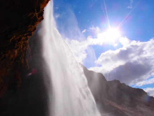 ユネスコ世界遺産に登録されている「シンクヴェトリル国立公園」内にある滝の一つ。アイスランドにはあらゆる種類の滝が点在しており、こちらは一見、特に取り柄もないように思われますが、セリャラントスフォスの特長は滝の裏へ回れること!