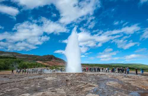 かつてアイスランドの間欠泉といえばゲイシールが代表的でしたが、近年噴出回数がめっきり減ったこともあり、ゲイシールから数100m離れた「ストロックル間欠泉」を観光するのがメジャーになっています。