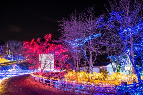 117haを有する自然公園。園内には10ヶ所のハイキングコースがあるほか、バーベキュー広場やキャンプ場、12,000株の花菖蒲が楽しめる菖蒲園があります。花菖蒲の見頃は例年5月下旬〜6月上旬にかけて。また毎年11月下旬〜12月下旬にかけてイルミネーションが開催され、多くの人で賑わいます。少ないですが出店もあります。約30万個の電飾を使用し、森の中を「滝と湖」をテーマにしたイルミネーションで彩ります。
