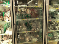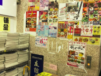 写真:ある通訳案内士 犬の肉も・・ |  写真:ある通訳案内士 中国人コミュニティの掲示板のようになっている |  写真:ある通訳案内士 「東京中華街」の文字が光る |