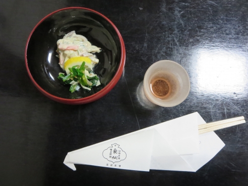 食前酒を飲み干した後は、豆腐の白酢和え。もうこの時点で甘味・苦味・酸味など色々な味わいが楽しめていますね。