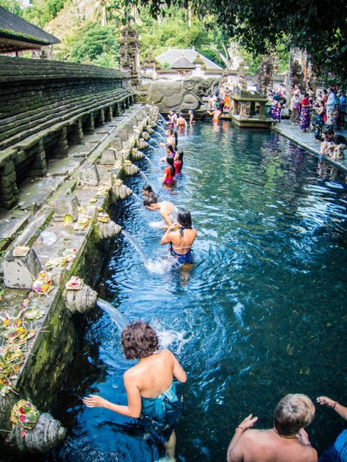 ウブドの北にある、「聖なる泉が湧き出る寺院」として有名なお寺。その特徴から「ティルタ=水」「ウンプル=聖」の名前がついており、英語では「Holy Water Temple(聖水の寺)」と呼ばれています。驚くべきはその水の透明度!一切の淀みのない湧き水はまさに聖水と呼ぶにふさわしい美しさです。こちらで湧き上がる透明の聖水には、無病息災の効果があると言われています。こちらはバリヒンドゥーのお寺ですが、信者や地元民ではない観光客でも沐浴を体験することができます。ちなみにティルタ・エンプルには沐浴利用者のためのロッカールーム(男女共用)もありますので、水着を持参すれば着替えることもできます。頭から水を被らなければならないので、タオルも忘れずにご持参くださいね!